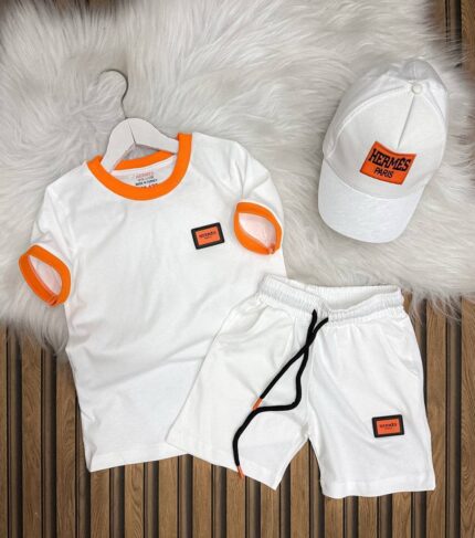 Hermes Paris Baskılı Şapkalı Üçlü Yazlık Takım – A Kalite